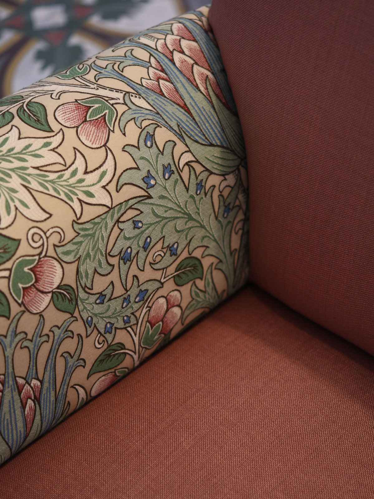 Fabric: raffia co/ny col. caramel and jacquard William Morris des. artichokes